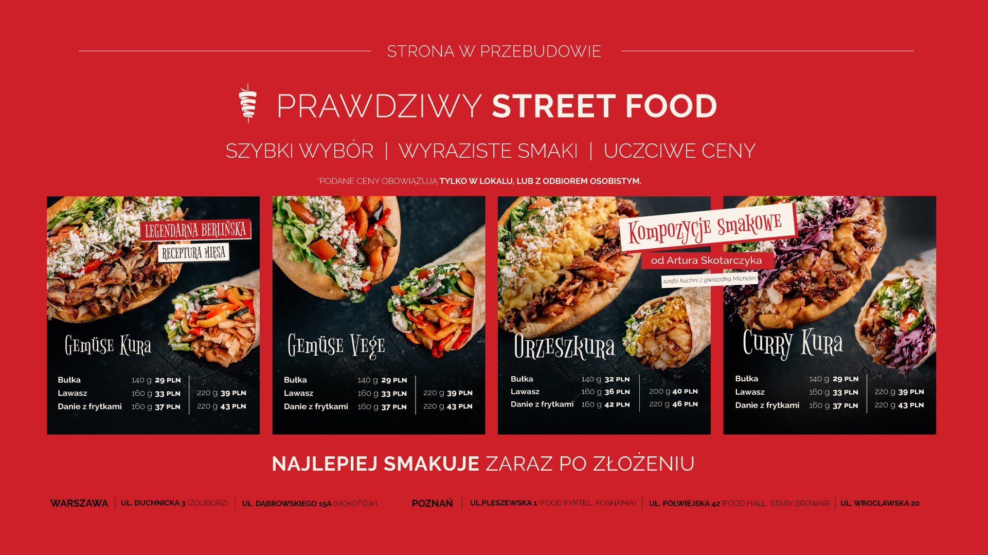 Nowy kebab dostępny jest na razie tylko na miejscu, w lokalu. Po kilku tygodniach uruchomimy jego sprzedaż również w dowozie. Dlatego zachęcamy Was do odwiedzin naszych lokalizacji i złożenia zamówienia przez stronę kurawarzyw.pl (15% rabatu dla nowych zalogowanych użytkowników, 10% na kolejne zamówienia)